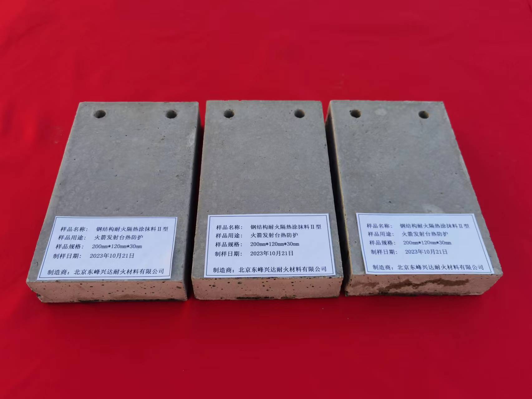 近日,我司鋼結(jié)構(gòu)耐火隔熱涂抹料在北京航天長征飛行器研究所完成燒蝕試驗。實驗條件:測試設(shè)備為YA6804型氧氣煤油發(fā)動機(jī);發(fā)動機(jī)燃燒室壓力1.4±0.05Mpa;發(fā)動機(jī)余氧系數(shù)0.7±0.03;發(fā)動機(jī)噴口直徑65mm;噴口出口燃?xì)鉁囟?210K;噴口燃?xì)馑俣?390m/s;燃燒室溫度3470K;燒蝕時間10s/件;試樣表面***大熱流密度17.9MW/m2;試樣表面壓力值0.37Mpa;試樣表面溫度約為2300℃,經(jīng)過高溫高速氣流燒蝕10s后試樣外形完整,沒有出現(xiàn)掉塊脫落現(xiàn)象,表面沒有裂紋,表面成玻璃相,背部溫升大約在15℃,隔熱性能良好!試樣燒蝕速率≤1.7mm/s,質(zhì)量燒蝕率≤40g/s,此次實驗取得圓滿成功!