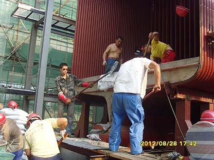 我司鋼纖維澆注料用在北京市大興某熱力公司75T熱氣鍋爐爐膛