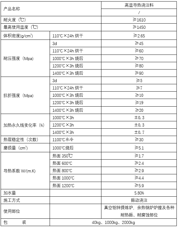 以下是本公司高溫導(dǎo)熱澆注料的技術(shù)指標(biāo):