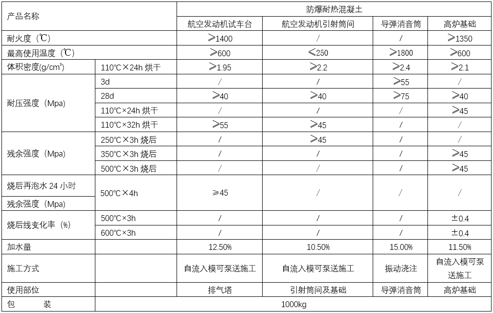 以下是本公司防爆耐熱混凝土的技術(shù)指標: